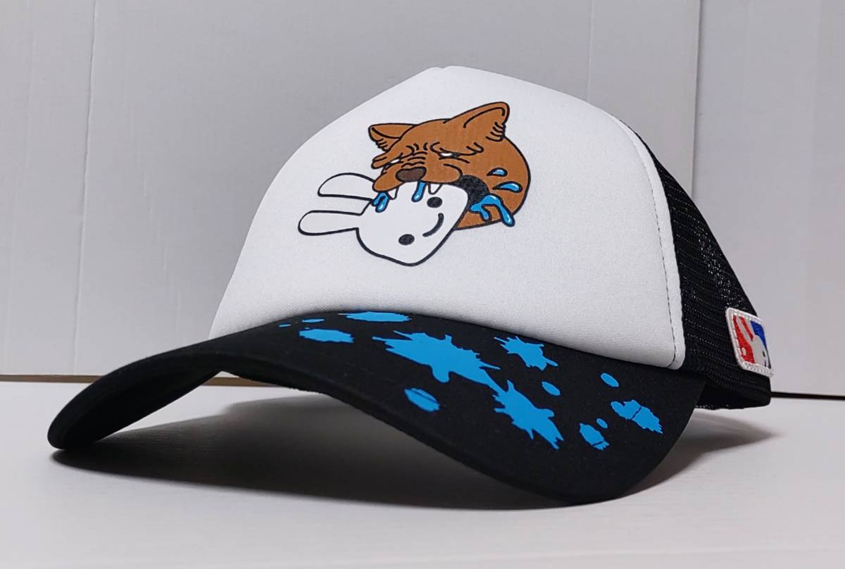 - 2023 CUNE『メッシュキャップ かみつき』ポリエステル100% 黒×白 フロントとバイザーにプリント 約59cm サイズ調節可能※未使用/タグ付き
