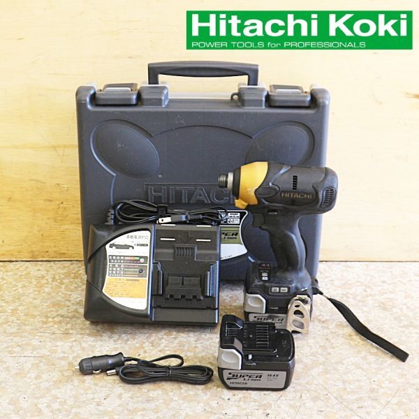 - 【新潟発】日立 コードレスインパクトドライバ WH14DBL 14.4V バッテリ×2 充電機 木工 建築 ネジ締め 電動 工具 中古 日立工機 HITACHI