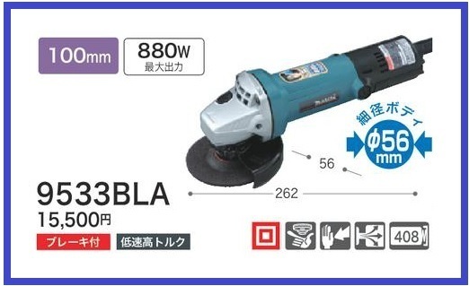 > マキタ 100mm ディスクグラインダ 9533BLA 【低速高トルク】■安心のマキタ純正/新品/未使用■