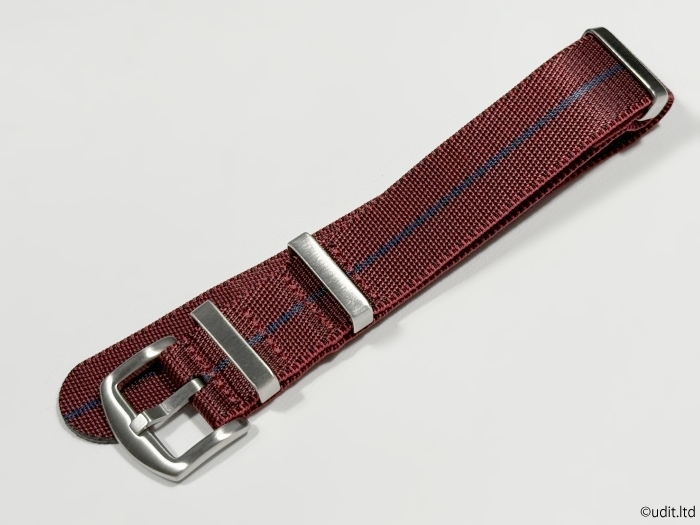 - ラグ幅:22mm 高品質 光沢 NATO ストラップ 腕時計ベルト ワインレッド × ブルー ファブリック 時計用バンド