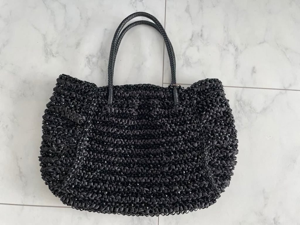 - ANTEPRIMA アンテプリマ サテン リボン 編み込み ワイヤーバッグ ハンドバッグ ブラック 黒