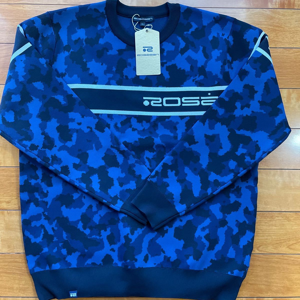 - 送料無料ROSASEN GOLFロサーセンMENS BIGLOGOスプラッシュ迷彩編地柄クルーネックプルオーバー伸縮軽量ライト蒸れ軽減Navy(大特価LL)新品