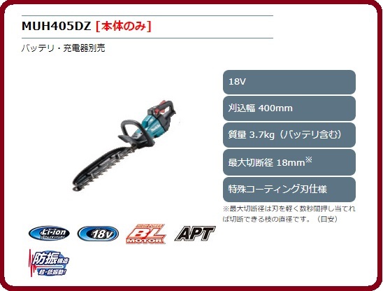 > マキタ 400mm 18V 充電式ヘッジトリマ MUH405DZ (本体のみ) [バッテリ・充電器別売]■安心のマキタ純正/新品/未使用■
