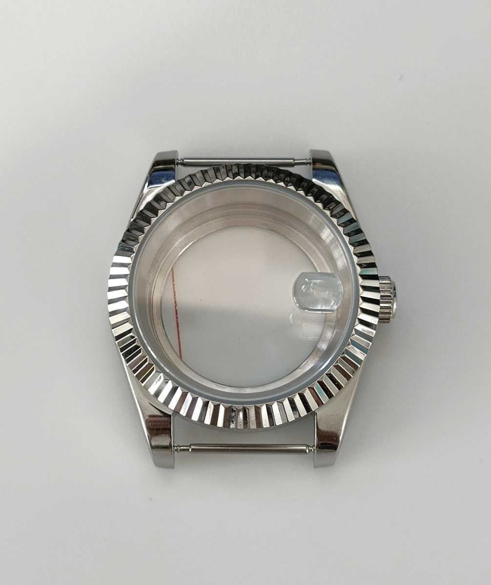 - 39mm デイト 腕時計 ケース フルーテッドベゼル スケルトン裏蓋 【対応ムーブメント】SEIKO NH35/NH36/4R35/4R36 セイコー
