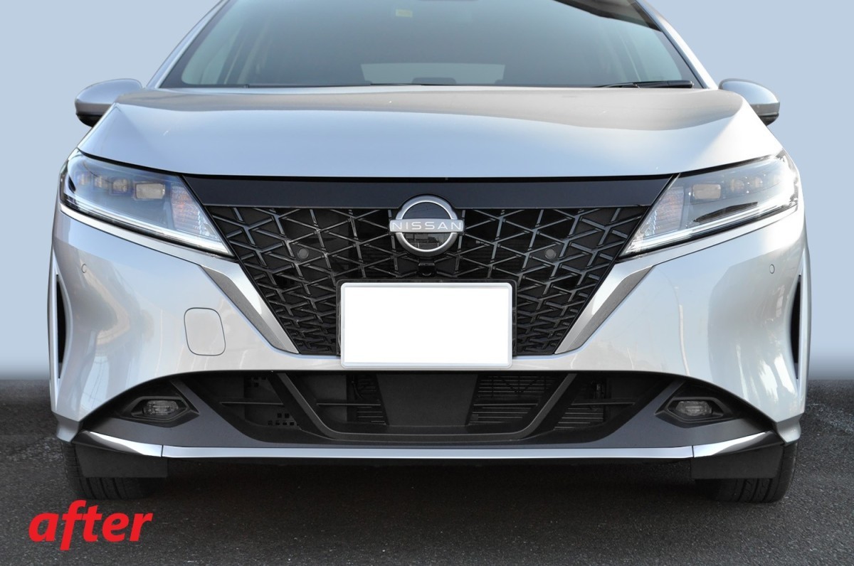 - E13 ノート フロントバンパーガーニッシュ 送料込み クローム ガラスコーティング施工済み
