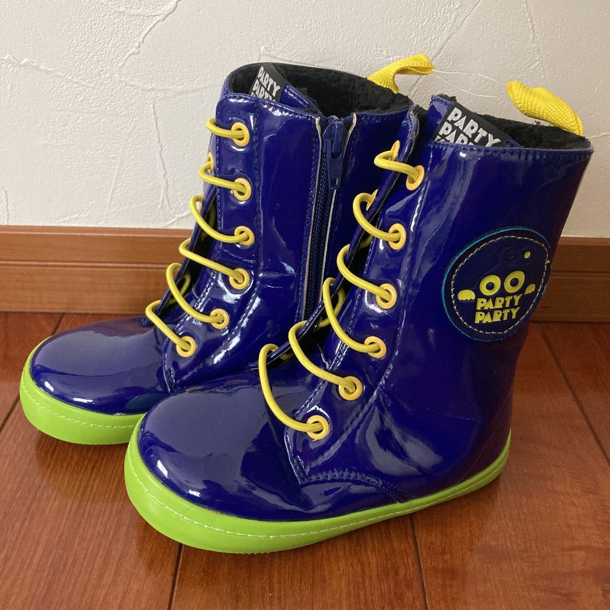 - PARTY PARTY・パーティーパーティー・内ボア・ブーツ・軽量・靴底柔らか・ブルー・17cm・定価3672円③
