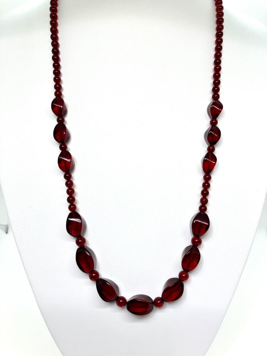 - 【新品】レッド琥珀ネックレス*こはく*コハク*貴重*アンバー*ロングネックレス*レッドアンバーネックレス*リトアニア産
