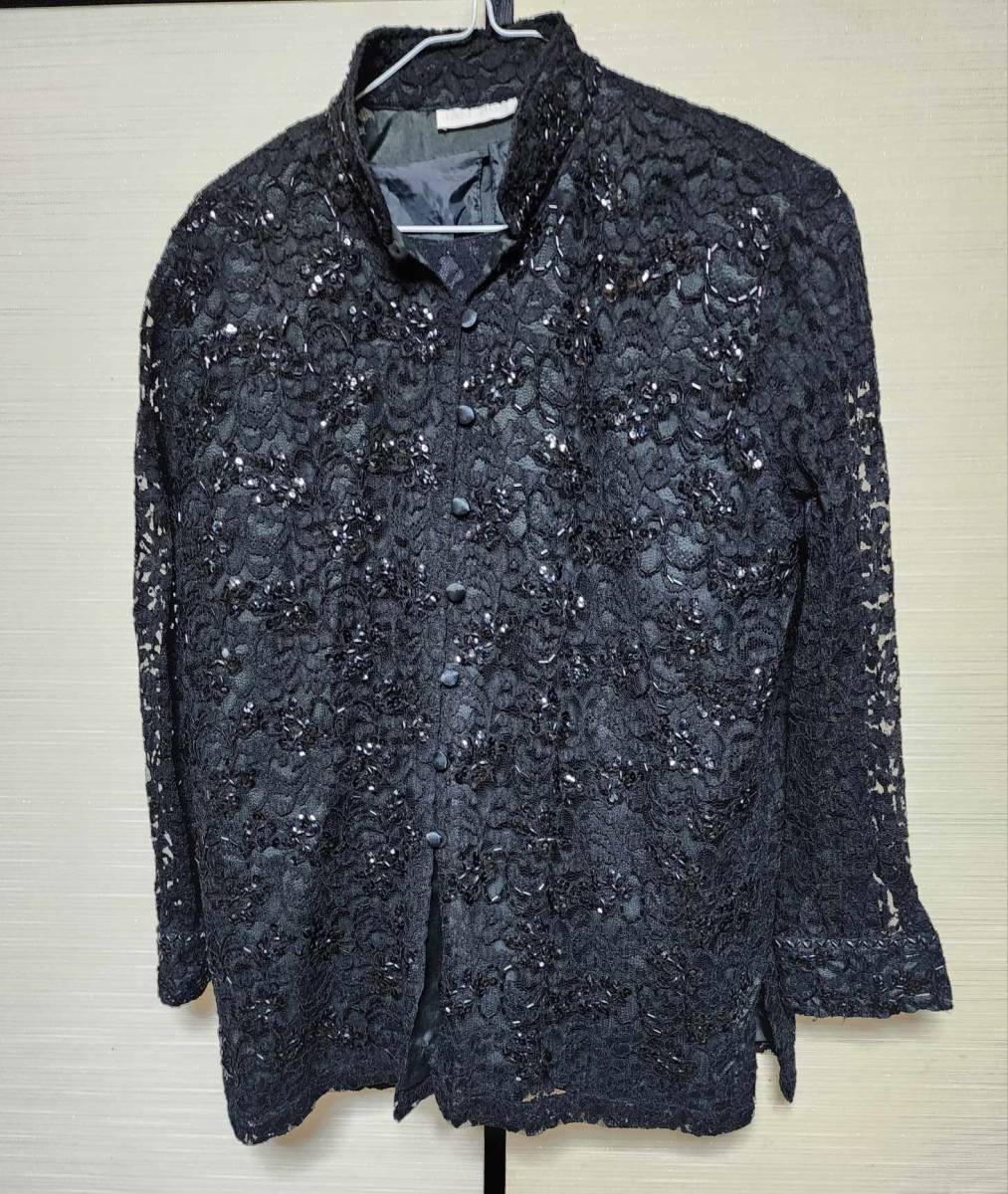 - 超昭和レトロ ジビーズャケット+Tシャツ アンサンブルセット シースルー黒花柄M