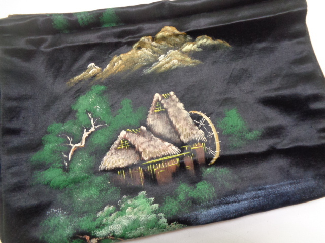 > d512-60 アンティーク 名古屋帯 ほどき 正絹 福栄 手描き 山水画 幅30センチ×長さ約345センチ リメイク素材