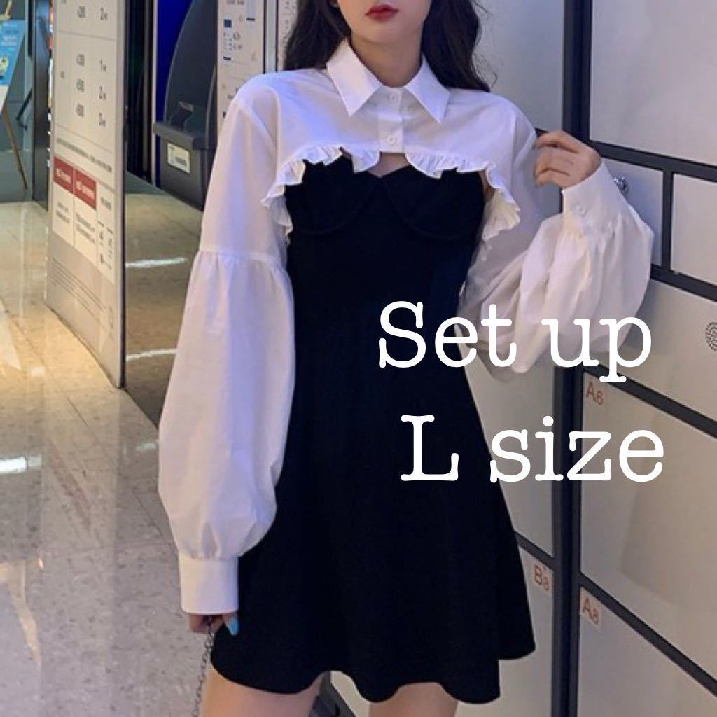 - ワンピース アシンメトリー ミニスカート ミニワンピース セットアップ 上下セット 2点セット ブラウス ブラック M