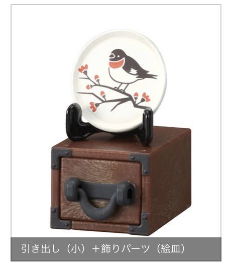 - ★ミニチュア★ガチャガチャ 和だんす~紋 あや~ 引き出し(小)+飾りパーツ(絵皿)