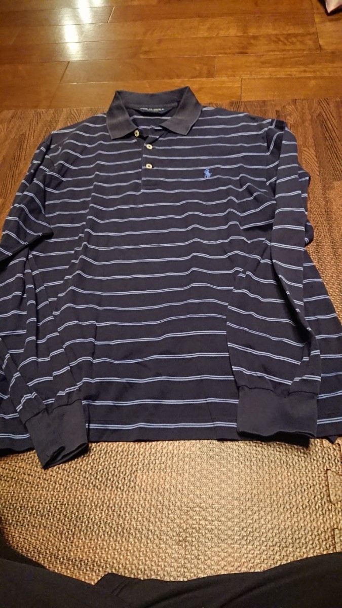 - ポロゴルフ 長袖ポロシャツ 中古 サイズM 実寸L ネイビー×ブルー