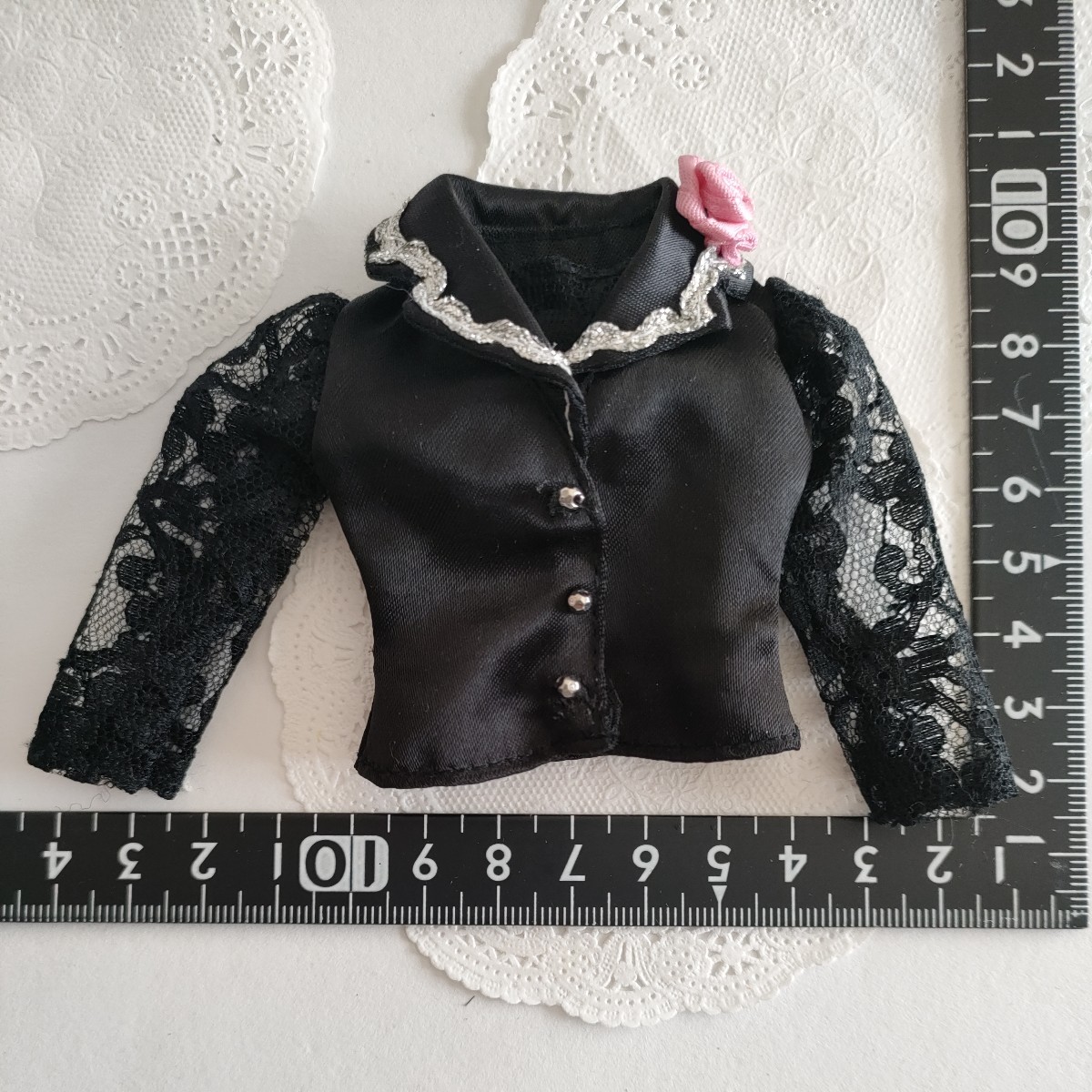 - 3r726 ドール用 ピンク 薔薇 コサージュ付き 黒 レース ジャケット momoko バービー ジェニー タミーちゃん 1/6ドール