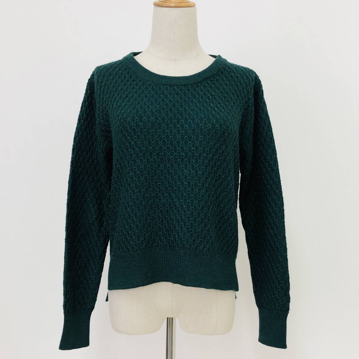 - k2037 SHIPS レディース ニット セーター 長袖 サイドスリット 薄手 ナチュラル 緑 毛混 シンプル 万能 上質 ベーシックカジュアルスタイル