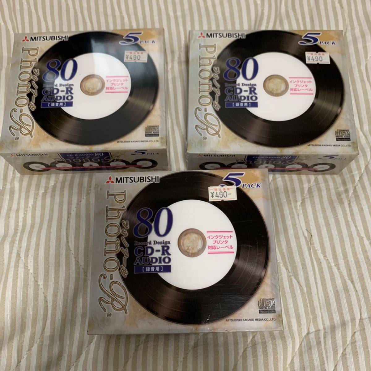 - 日本製 三菱 音楽用 録音用 フォノアール Phono-R 80分 5パック × 3 CD-R レコード柄