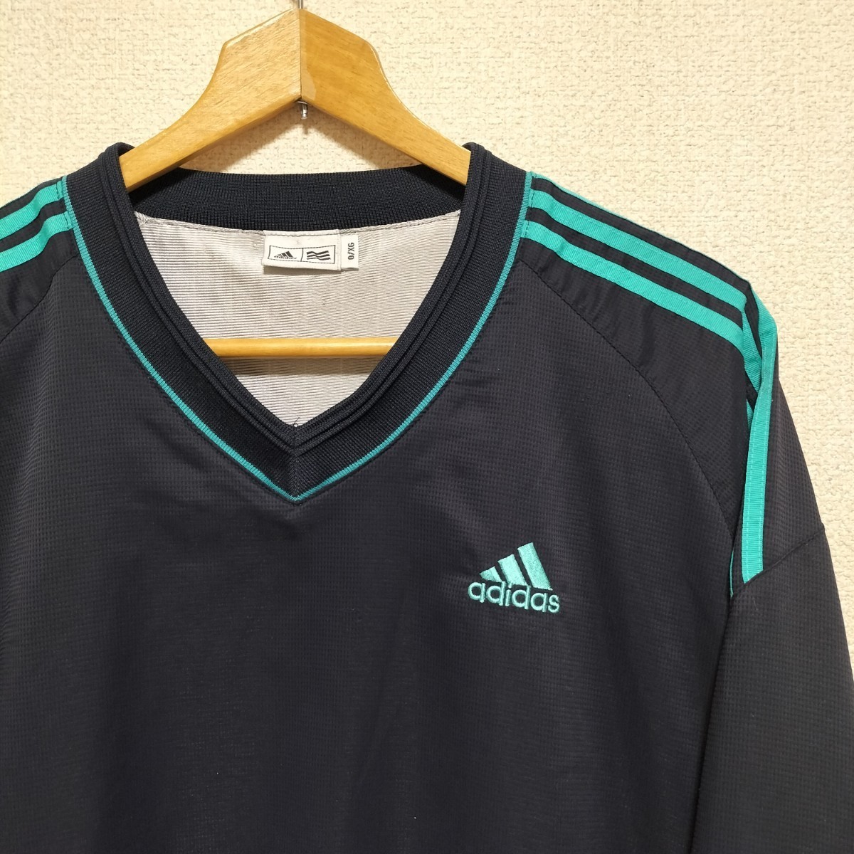 > ☆old adidas golf Vネック 2way プルオーバー ナイロンジャケット デタッチャブル サイズXL ネイビー オールド アディダスゴルフ USED