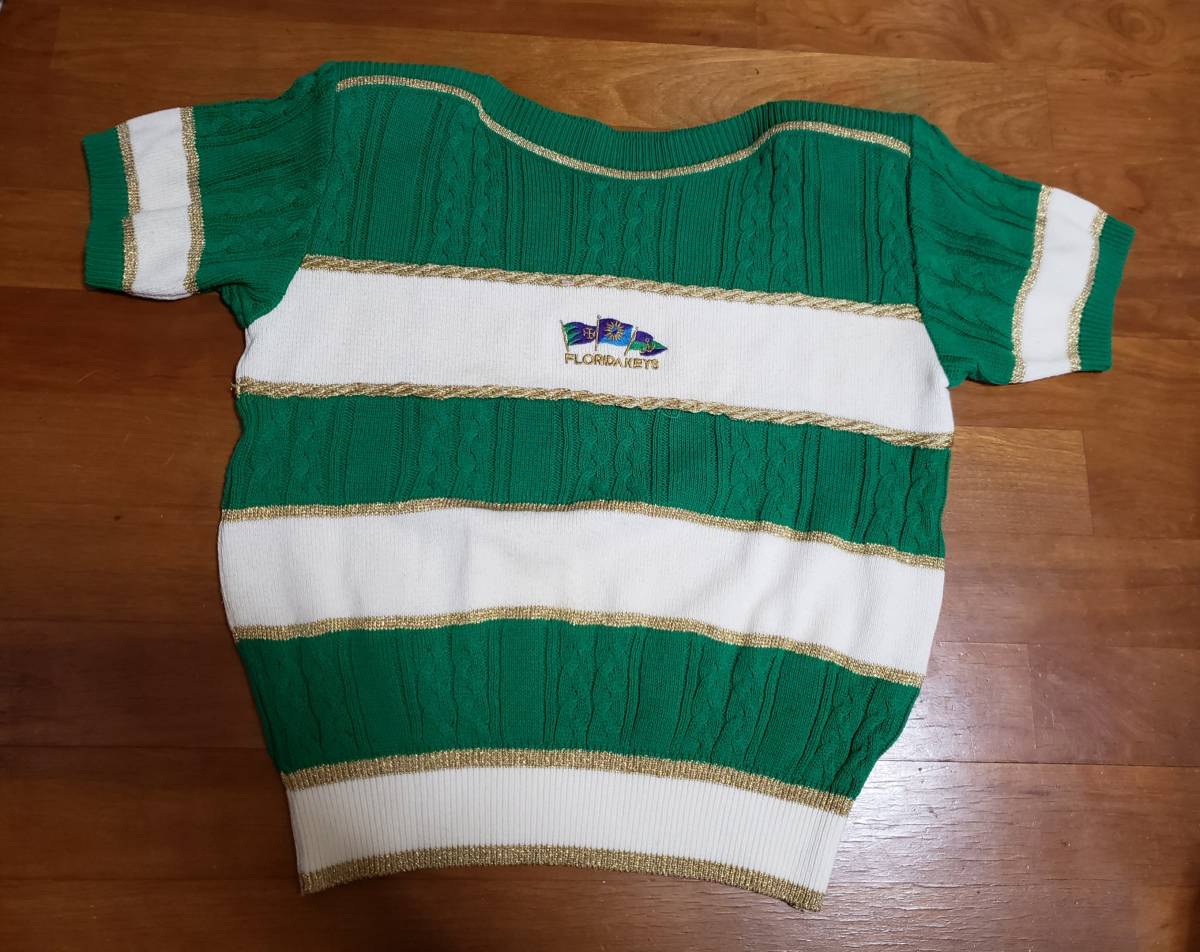 - FLORIDAKEYS フロリダキーズ レトロ 半袖 ニット セーター ボートネック グリーン 白 スリット糸 金色 日本製