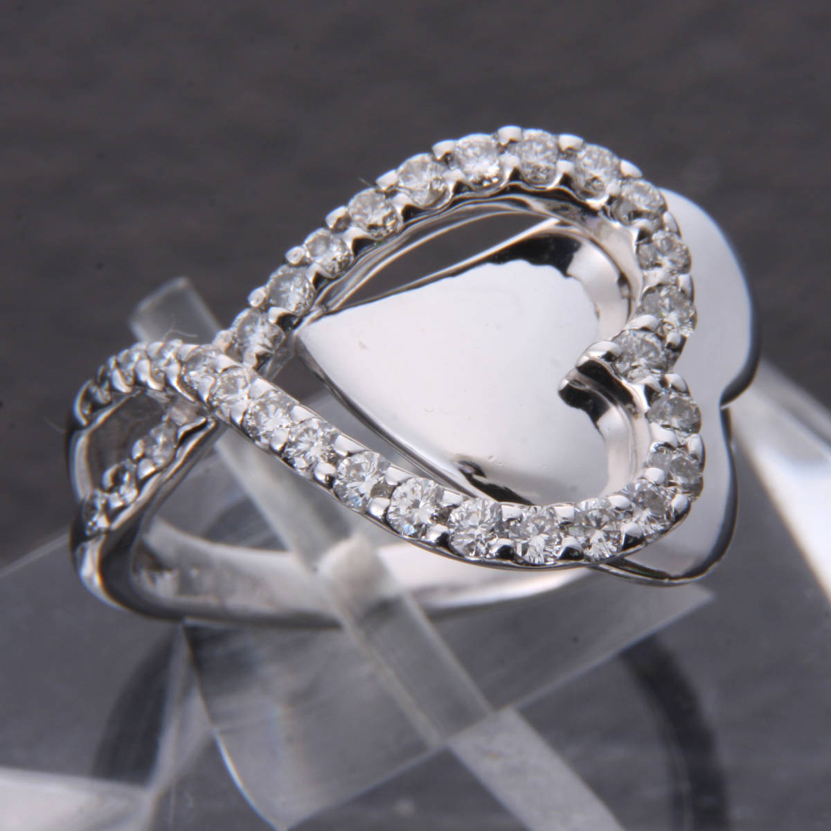- ke9766◆K18WGリング ダイヤモンド ハート 8号