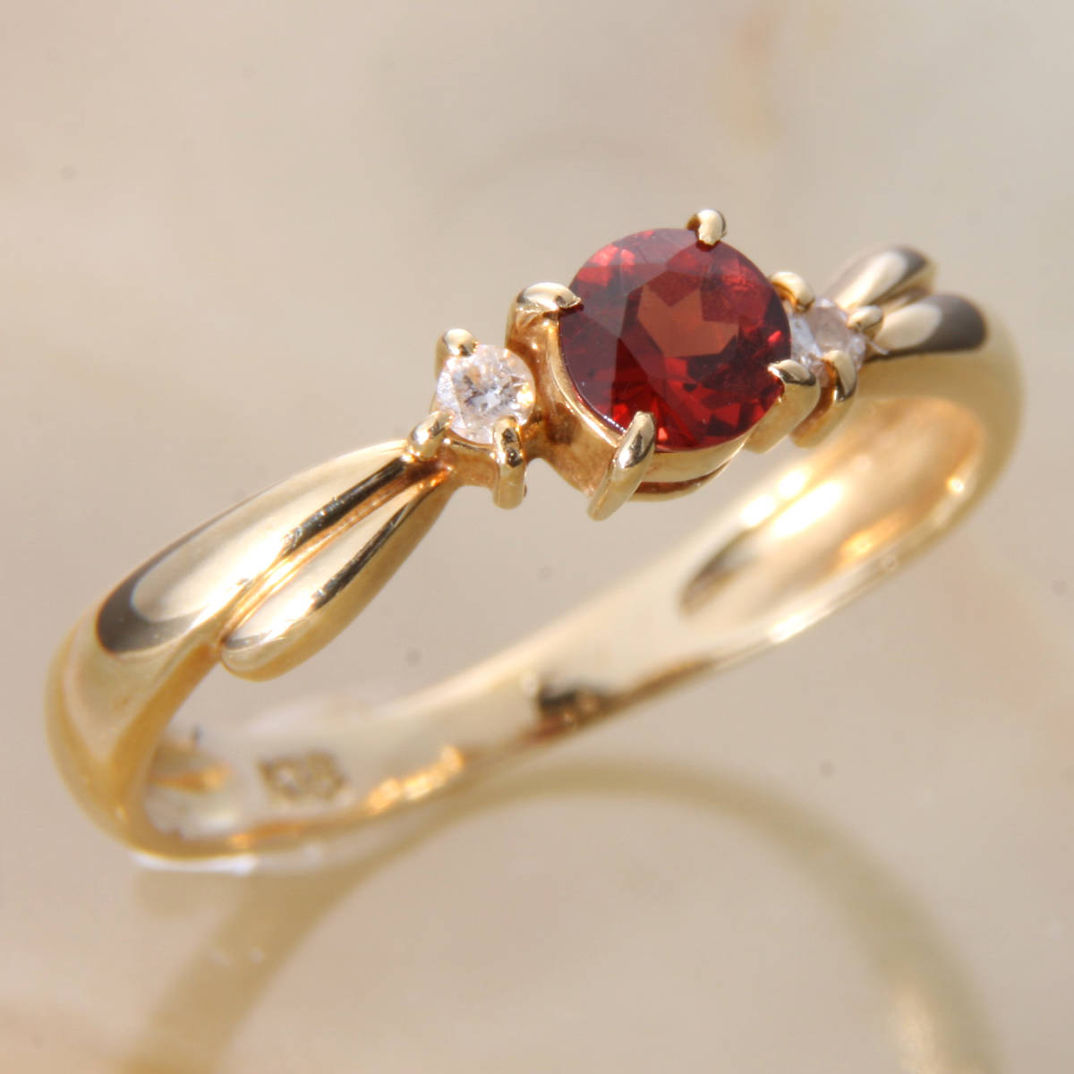 - ke9763◆K18リング ガーネット&ダイヤモンド 9号