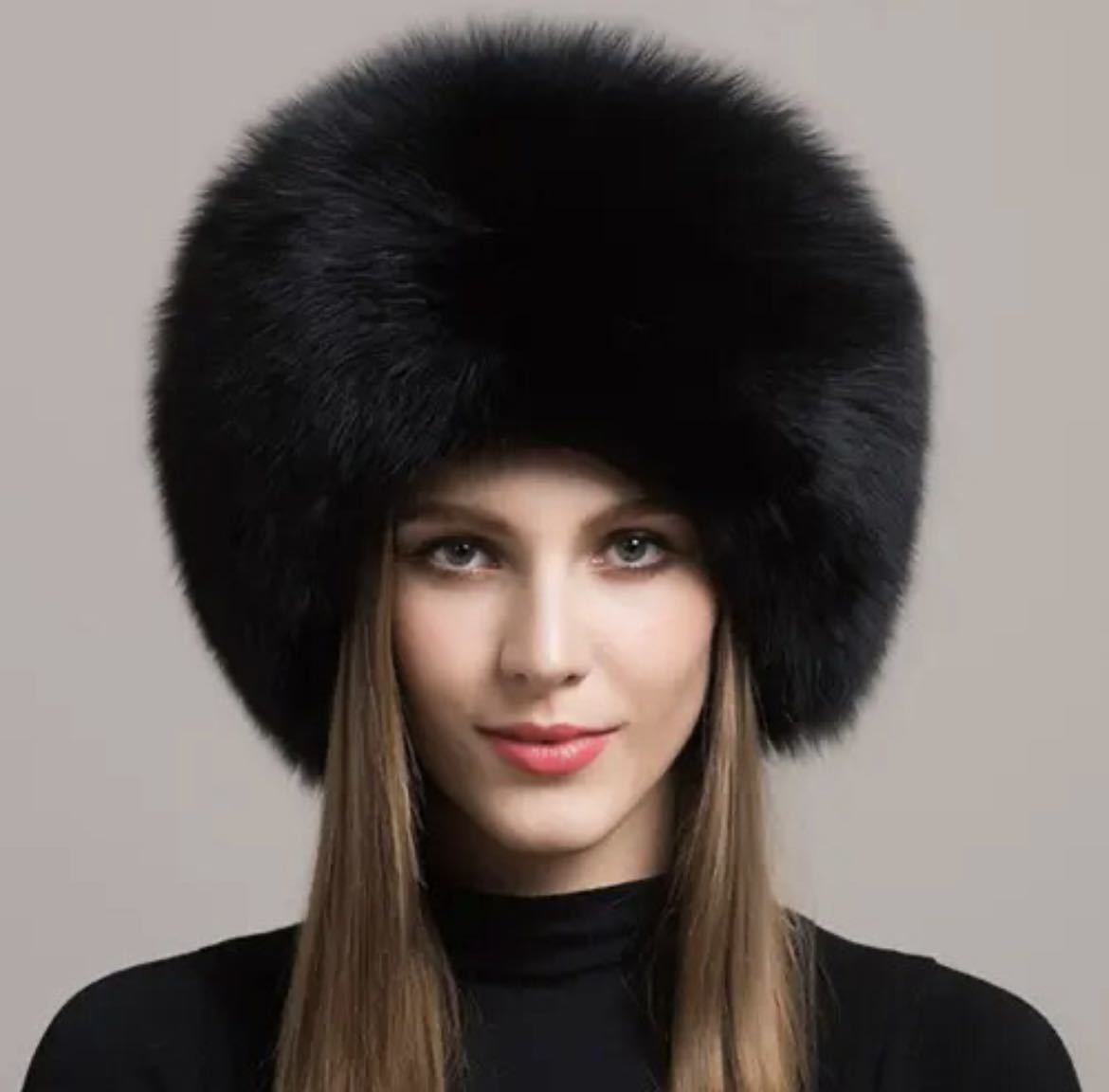 > キツネの毛皮防寒帽子 ロシアン帽子 防寒 帽子 暖かい 毛皮 冬用 イヤーマフ キツネ 狐 魅力的 黒 ブラック 2829