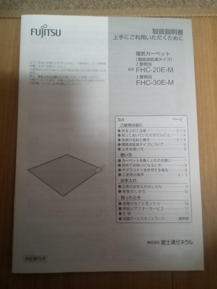 - FUJITSU 電気カーペット(電磁波低減タイプ)2畳相FHC-20EM”引き取り限定“