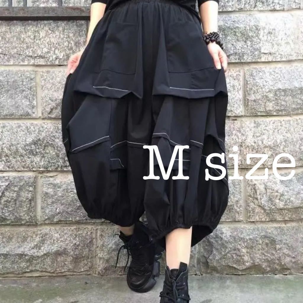 - ボトムス 7分丈 ハーフパンツ カーゴパンツ ワイドパンツ 膝下丈 パンツ カボチャパンツ ルーズパンツ ゆったり ブラック 黒 M