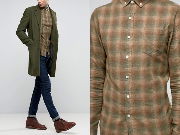 - Asos ブラウン スリム オンブレチェック長袖シャツ フランネルシャツ ボタンダウン S-M相当 nigel cabourn j.s homestead celt&cobra