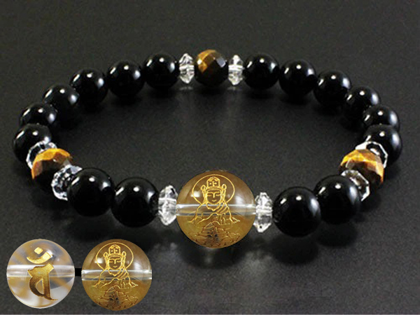 - オニキス「大日如来様と梵字」のブレスレット19.5cm