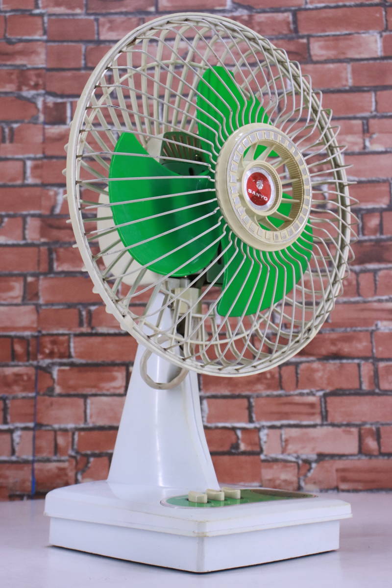 - レトロ! 扇風機 SANYO 卓上扇 アンティーク扇風機 oscillating fan EF-5LM 羽根径23cm 傷み(割れ)あり 中古現状品■(Z3076)