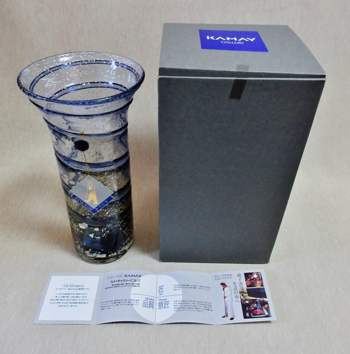 - カメイギャラリー製ラッパ型花器【銀箔入り渦巻文手造り】高さ27cm 未使用品 シール、栞、紙箱付