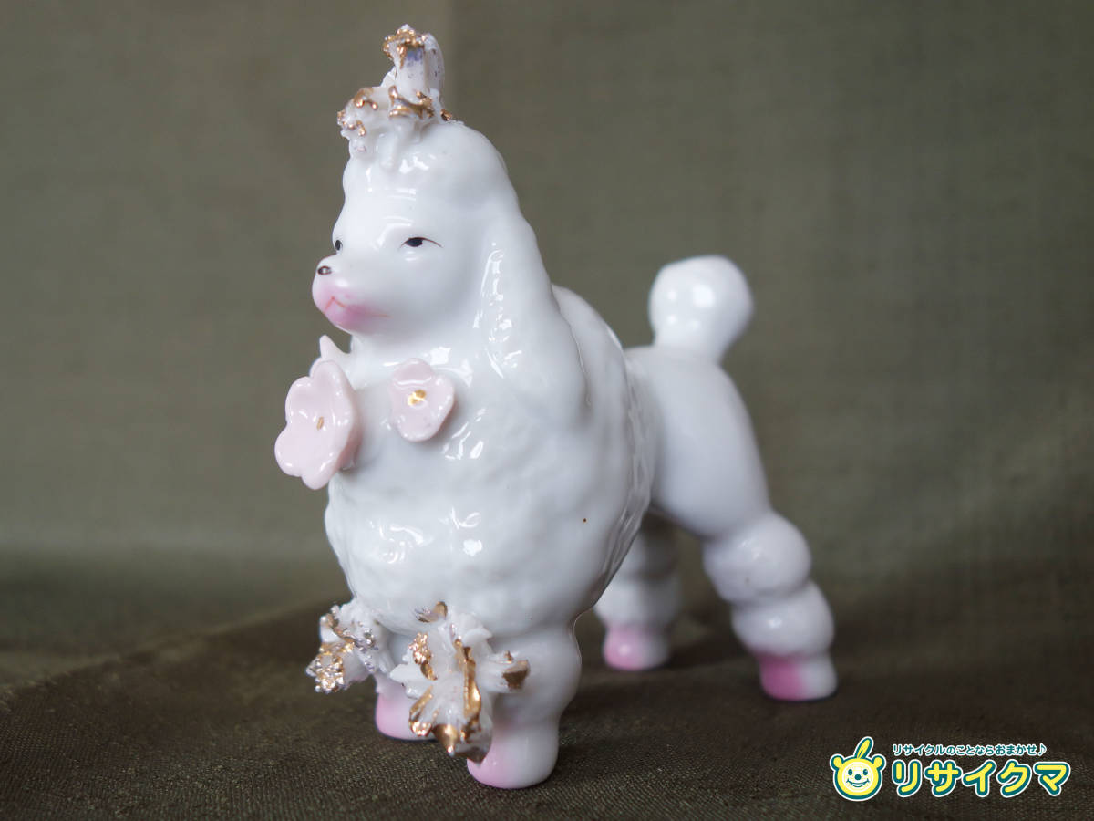 > 【中古】M▽ビンテージ アンティーク プードル 陶器 人形 オブジェ 置物 JAPAN (37335)