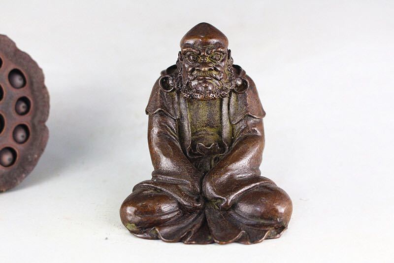 - 極美古銅質感細工実心銅達磨祖師仏像 大、自在、幸運縁起物