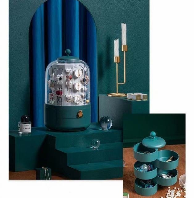 - ジュエリーボックス アクセサリースタンド 360度回転 大容量 収納 ケース ピアス 指輪 ネックレス グリーン