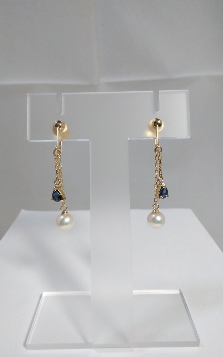 - K18YGアコヤ真珠&サファイアイヤリング!5.8mm珠。