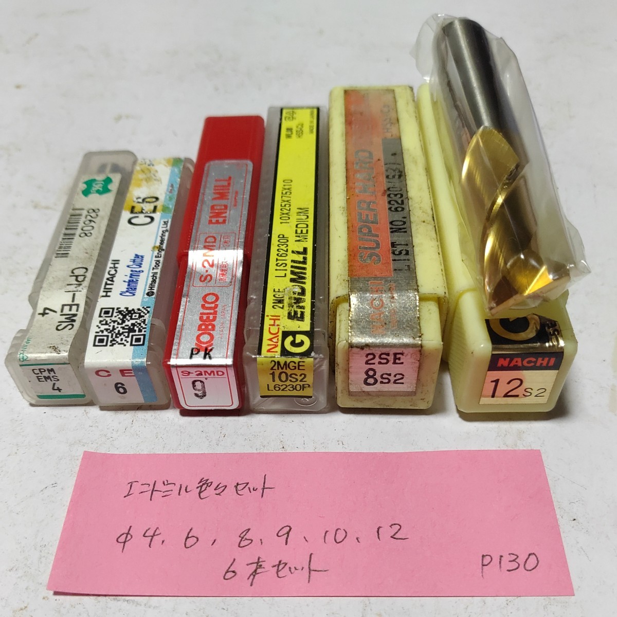 - P130 OSG 日立 コベルコ ハイスエンドミル色々セット Φ4 Φ6 Φ8 Φ9 Φ10 Φ12 6本セット