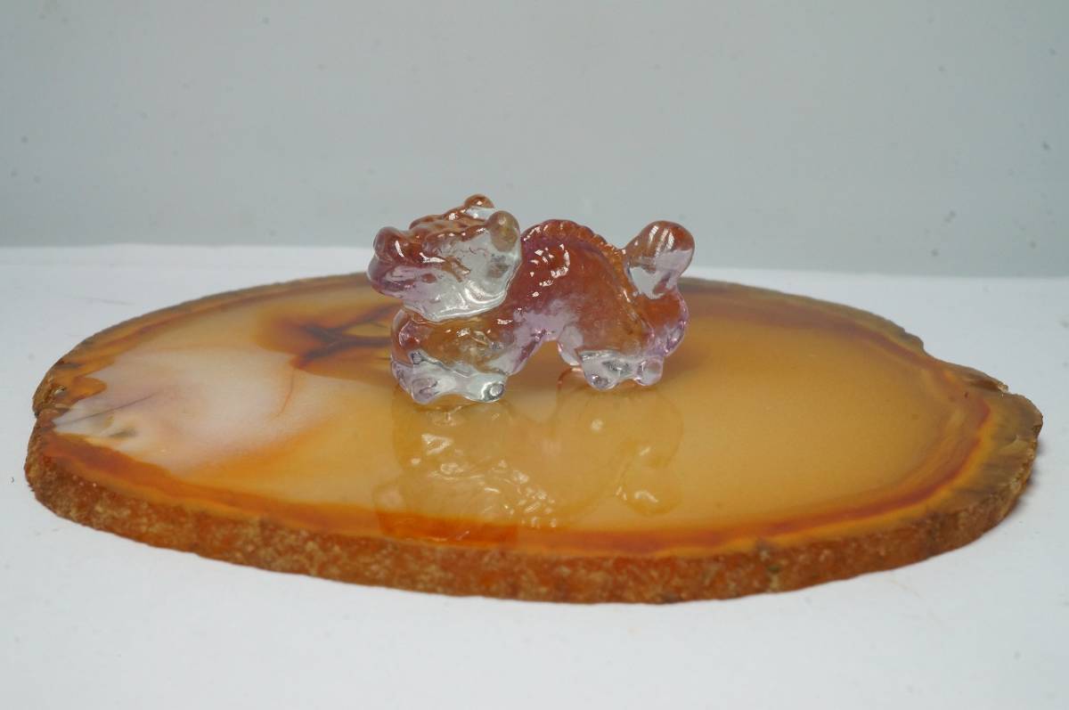 - 【限定特別即決価格!早い者勝ち】透明度と色合いの綺麗な天然フローライト(蛍石) カービング、彫刻置物「龍」 干支「 辰」瑪瑙台座付き①