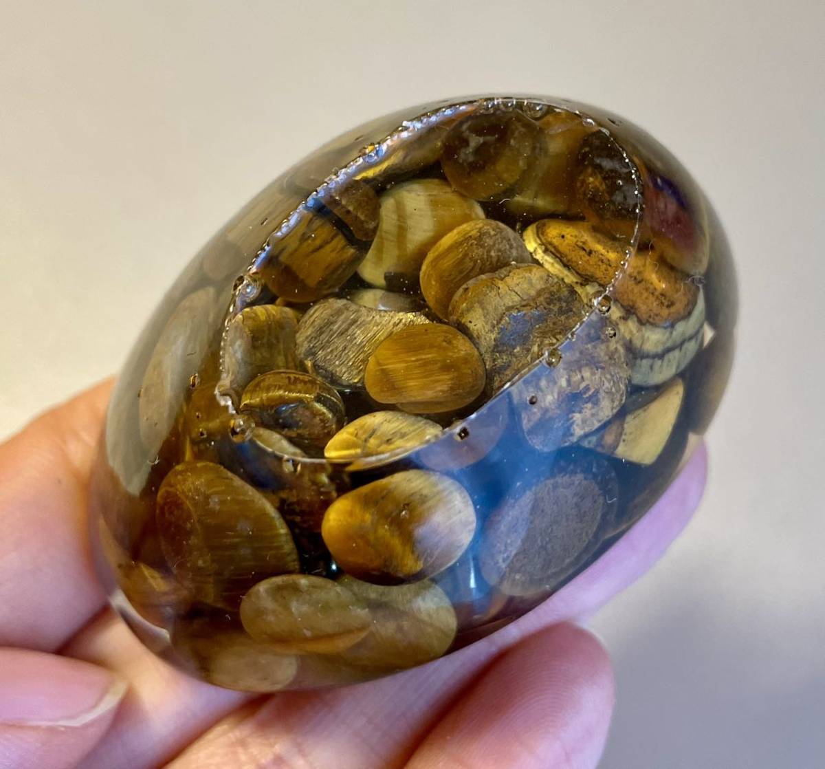 - 元宝のオルゴナイト タイガーアイ 天然石 パワーストーン 置物インテリア 銀錠 風水晶 魔除 お守 金運 財運 幸運 ラッキー