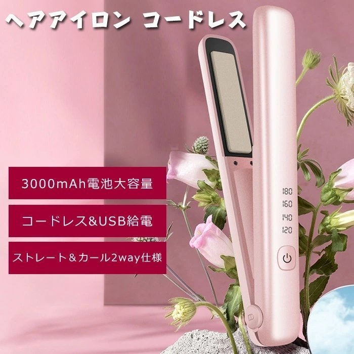 - ヘアアイロン コードレス ストレート カールアイロン ヘアアイロン 4段階温度調整USB充電式 2wayストレート カール ☆カラー/3色選択/1点