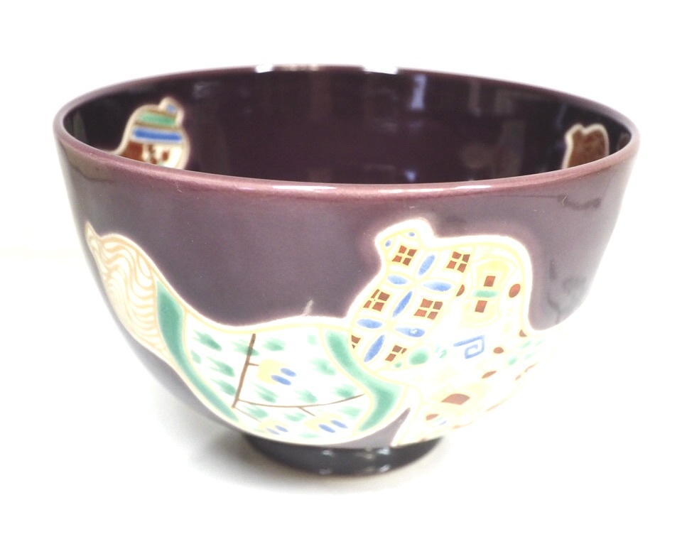 > 昭和期ビンテージ 茶道具 京焼 鈴木清安作 瓢箪紋茶碗 在銘品 在銘は清安 抹茶碗 瓢絵 箱無し 1980年代 KEN512