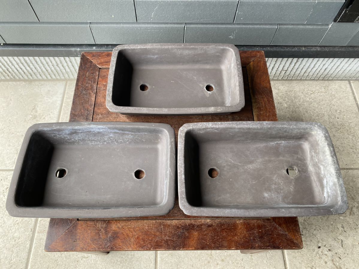 - 盆栽鉢 参樹陶園 3点セット 長方 鳥泥 小品盆栽 松盆栽 雑木 寄せ植え 雑木 多肉植物 山野草 草花 花 盆栽 鉢 植木鉢