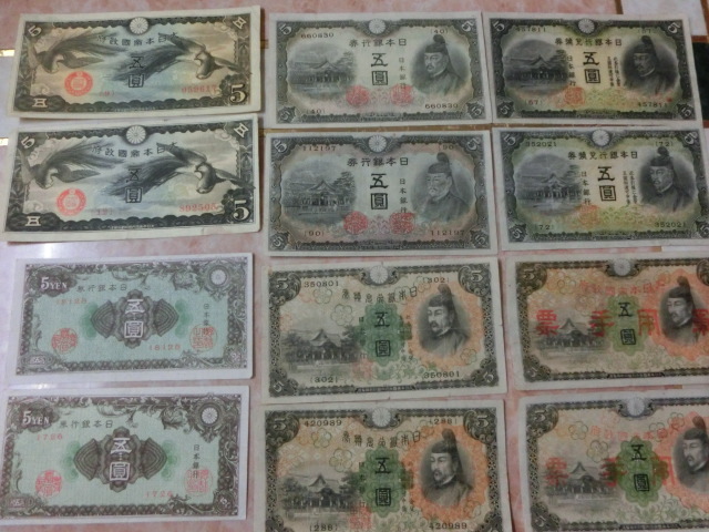 - ★ 1次5円・2次5円・3次5円・日華事変軍票 丙号5円 5枚・彩紋5円 ・戊号5円 6種12枚セット 上美品 ★ No.555