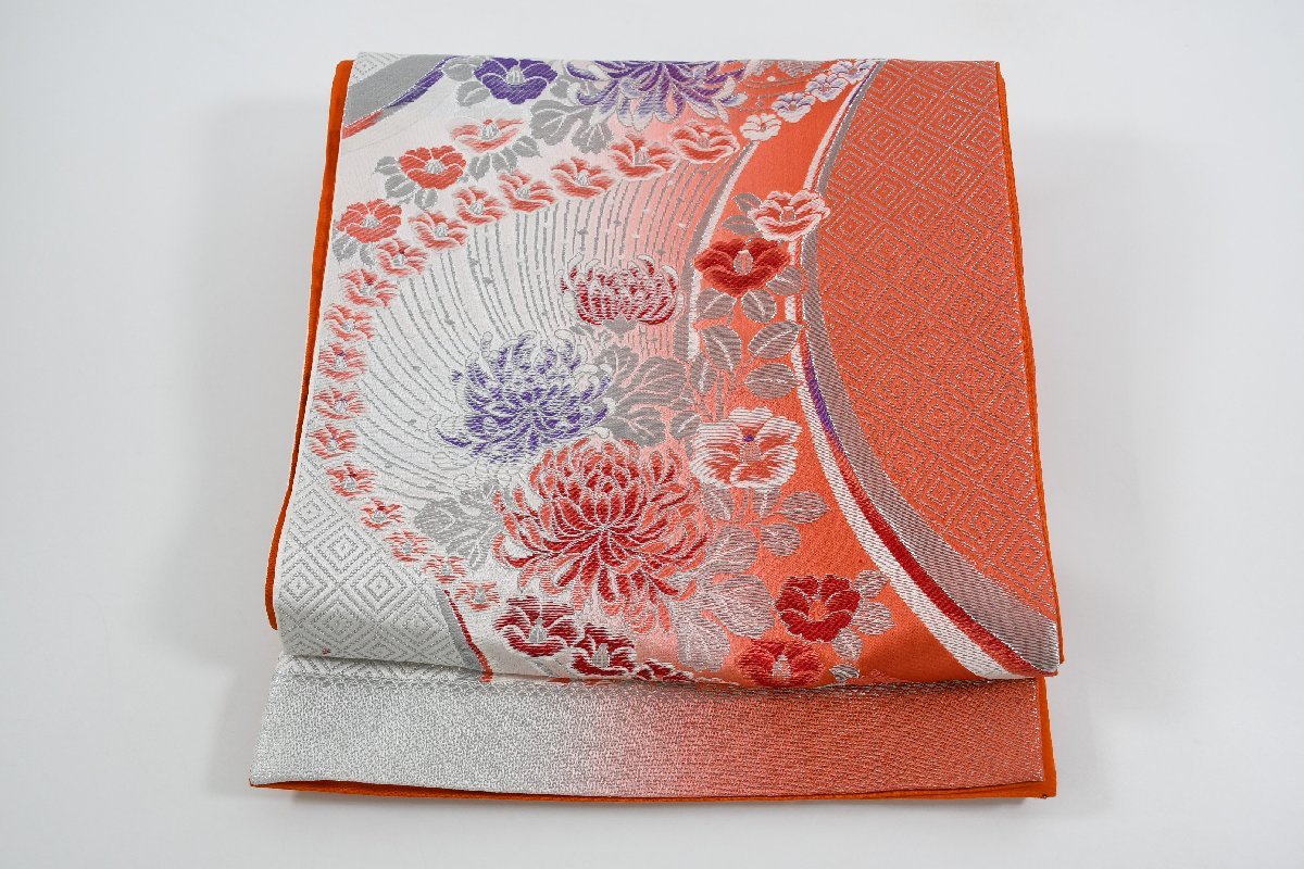 > 袋名古屋帯 未仕立て 六通柄 花 帯丈414cm ★着物屋 ne-7047 桜庭呉服店