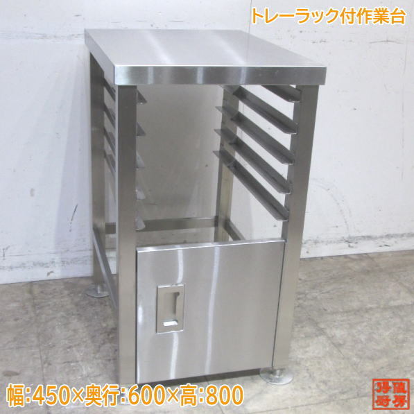 - ステンレス トレーラック付作業台 450×600×800 業務用 中古厨房 /23M2005Z