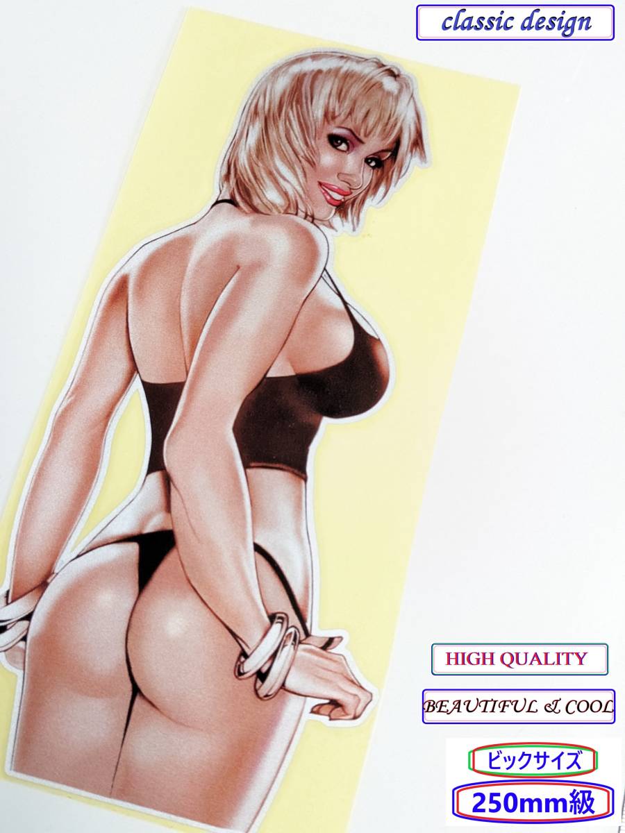 - 【BIG!希少キラキラ素材♪金黒水着】250㎜x117㎜ アート ピンナップガール★セクシーガール★セクシーステッカー★レトロステッカー
