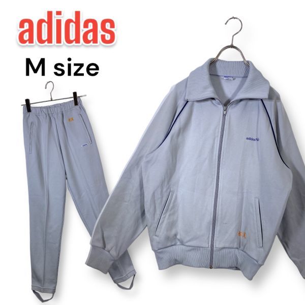 > デサント製 アディダス セットアップ 上下 ジャージジャケット パンツ adidas ビンテージ Mサイズ グレー 西ドイツ 80s70s ネーム刺繍