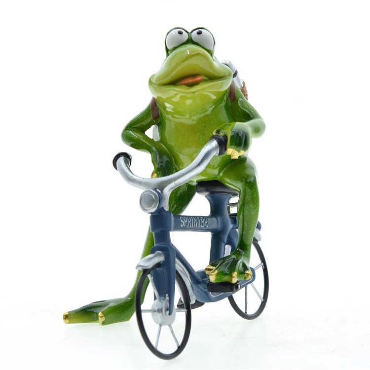 - カエル 自転車 置物 蛙 かえる 自転車乗っているカエル カエル好き 動物 部屋 インテリア ドールハウス 樹脂 玄関 風水 ガーデン 庭 面白い