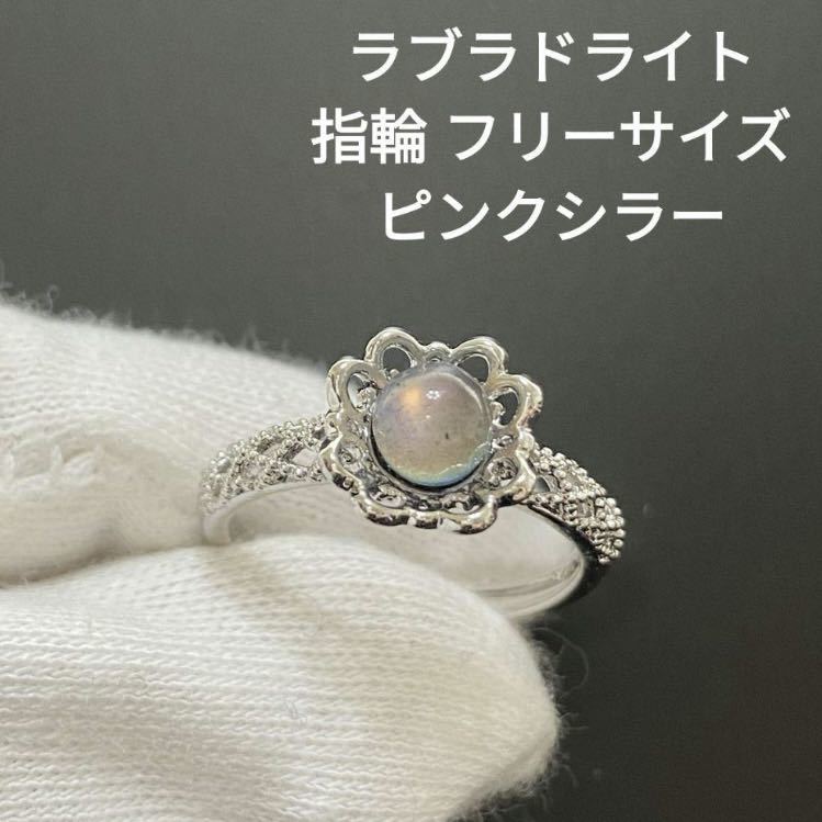 - 処分価格B429 ラブラドライト 指輪 フリーサイズ ピンクシラー