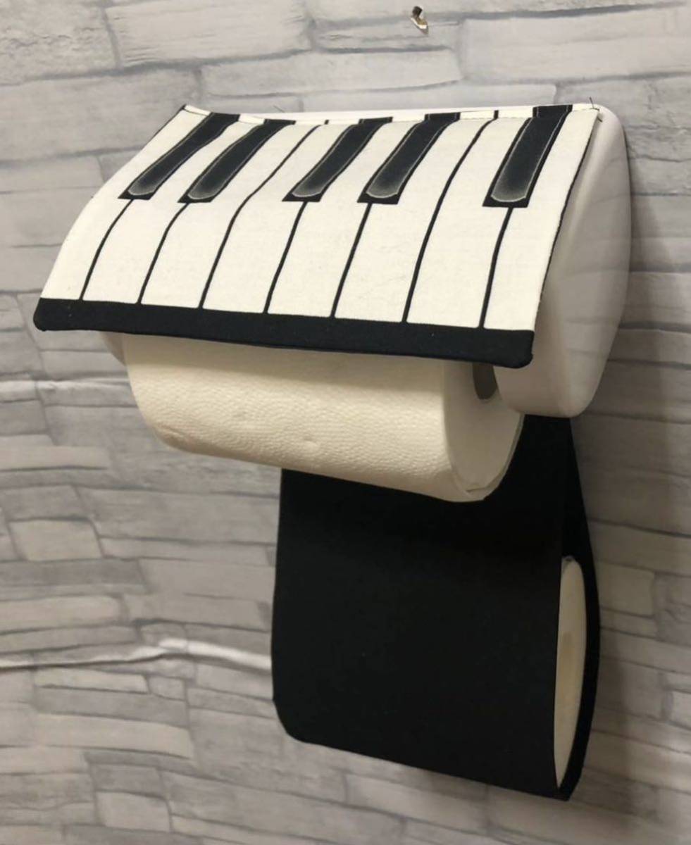 - ピアノ柄 トイレットペーパーホルダーカバー 鍵盤 ピアノ ハンドメイド ペーパーホルダーカバー