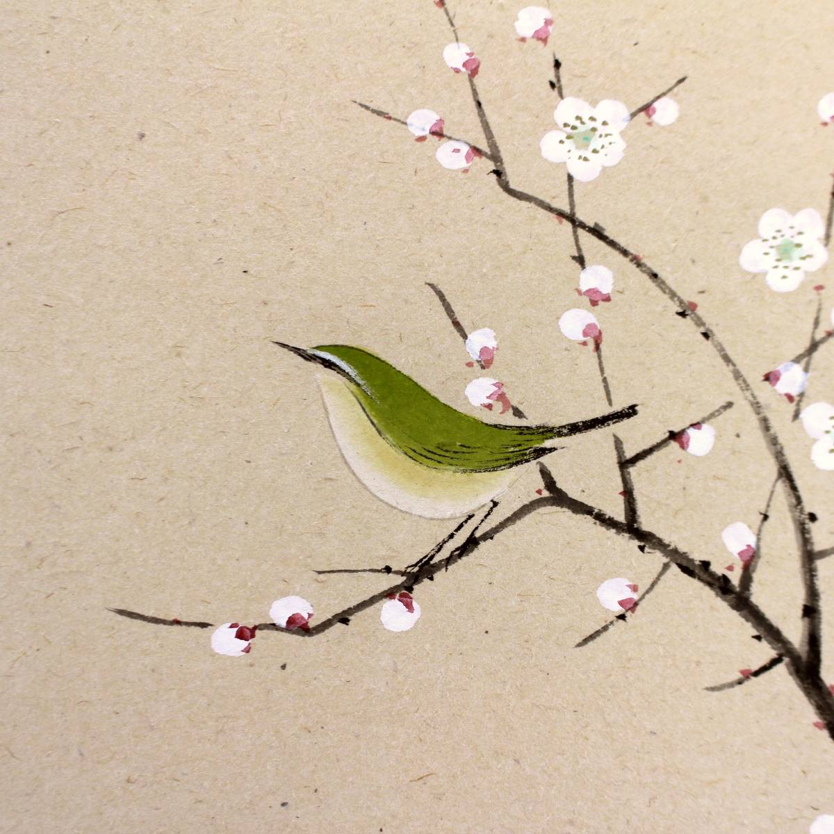 - 【前田宗源】 「春暖歌聲滑」 梅に鴬画賛 絵賛 ウグイス 横物 待合掛 新品