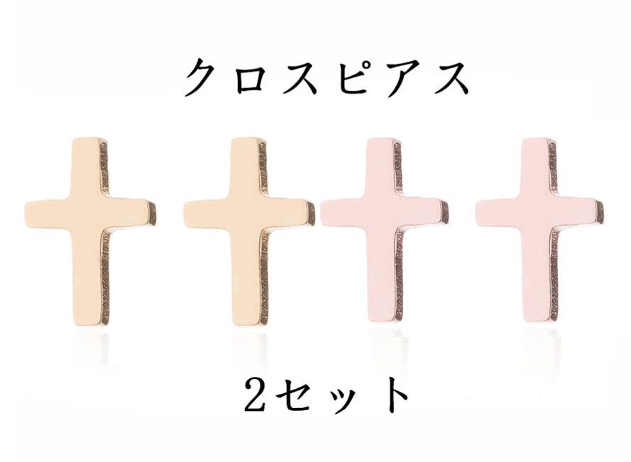 - クロス ピアス 2セット ゴールド ピンクゴールド ステンレス 十字架 おしゃれ スタッドピアス 両耳 小さい 2ペア